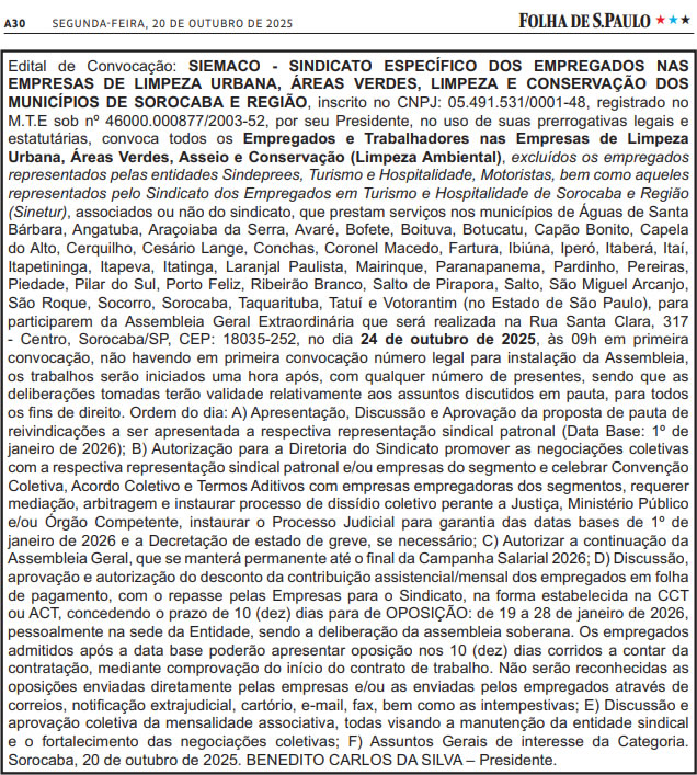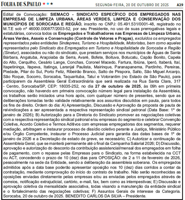SIEMACO SOROCABA / SALTO - Sindicato Específico dos Empregados nas