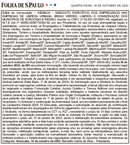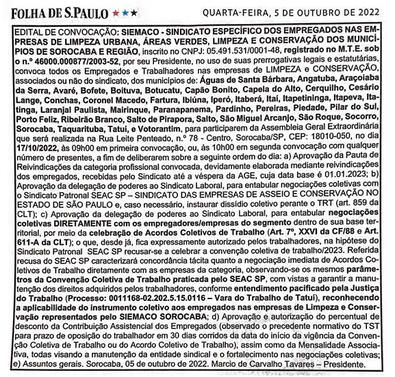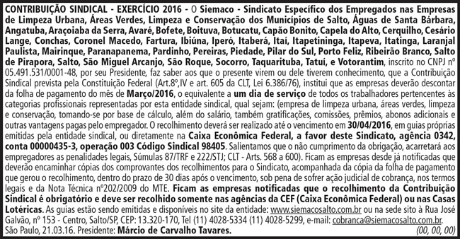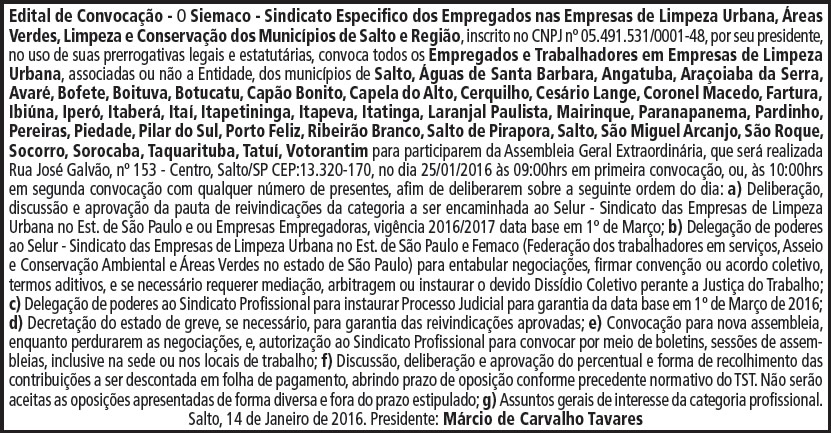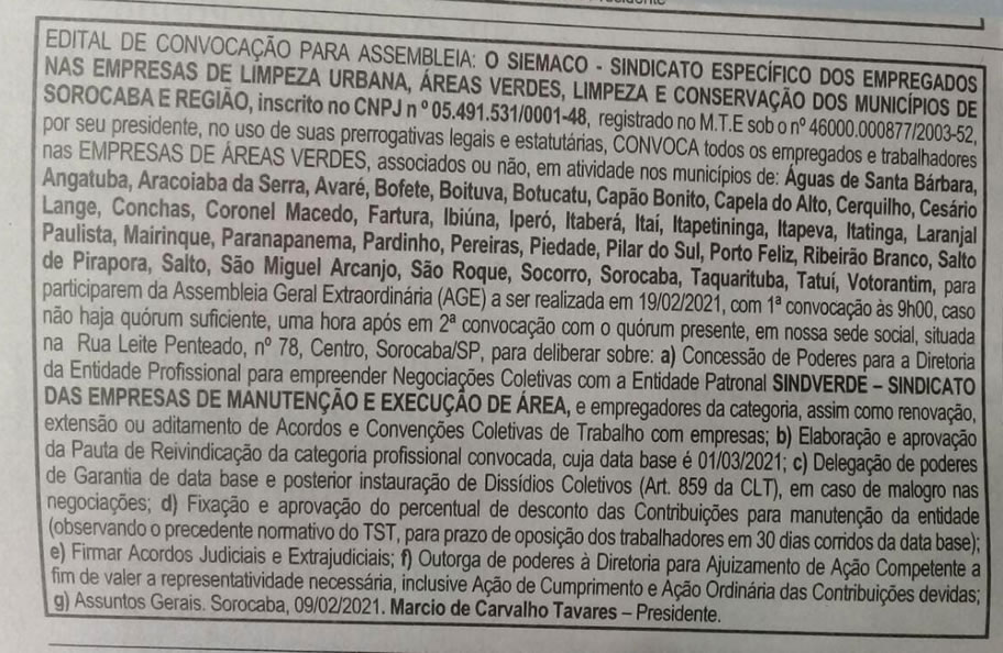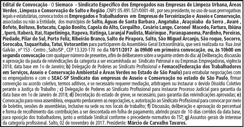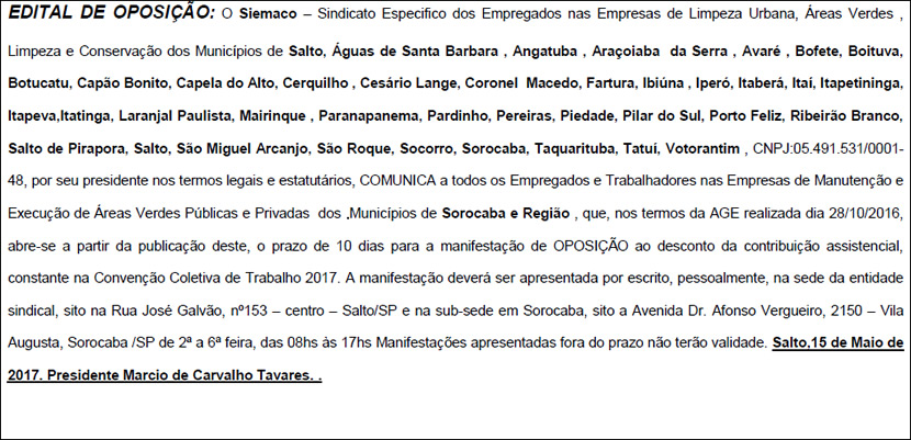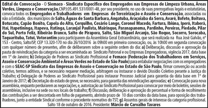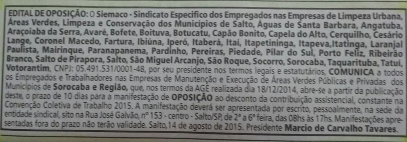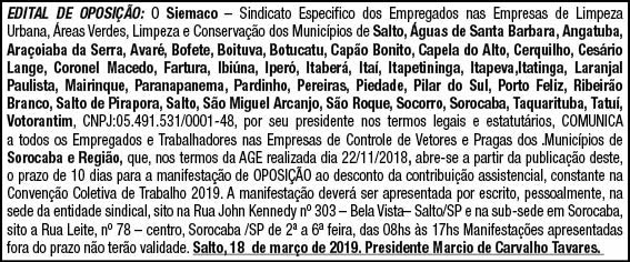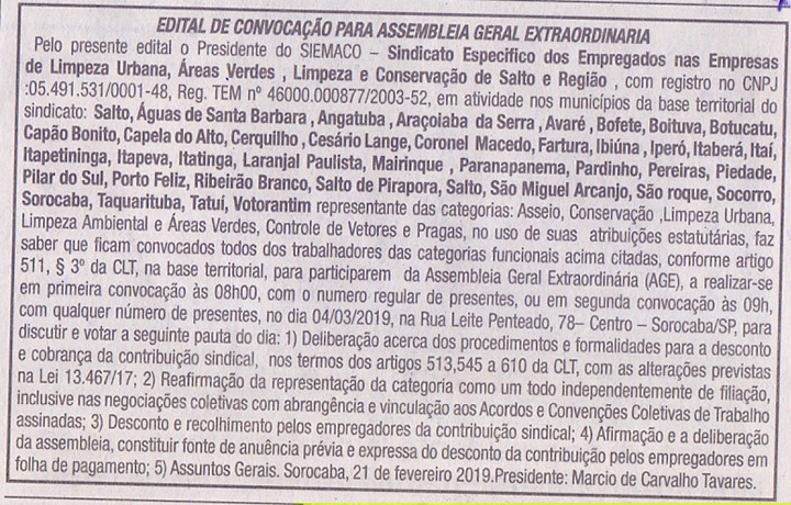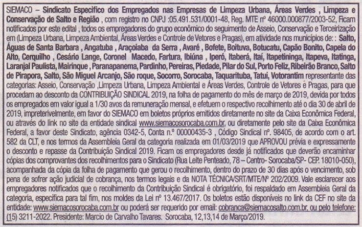 SIEMACO SOROCABA / SALTO - Sindicato Específico dos Empregados nas